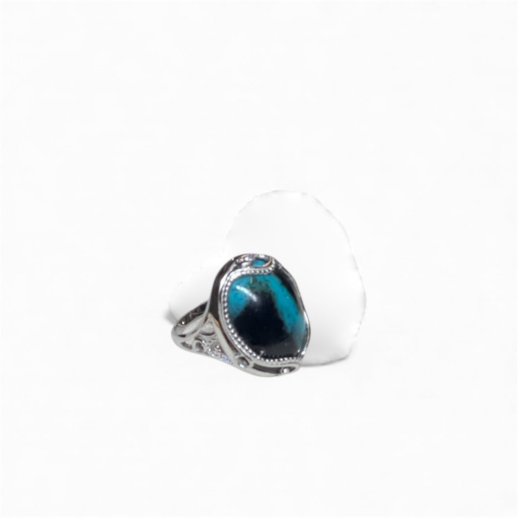 Ring sterling silver base adjustable with beautiful dark gem chrysocolla -cabochon from Java Indonesia